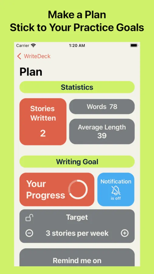 -Set Writing Goals in the Plan Board and get reminders at your scheduled time.
