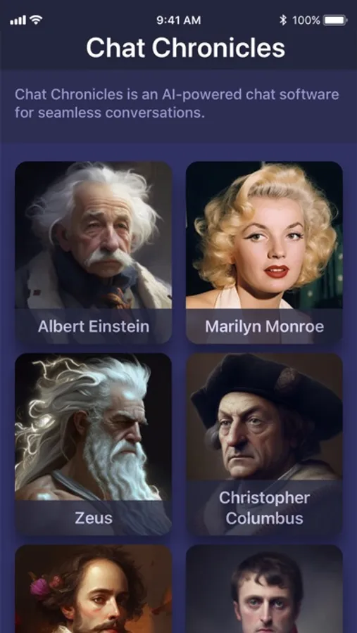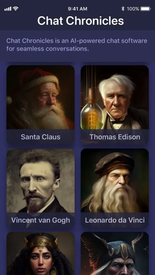 Dive into the Chat Chronicle and embark on an enthralling journey to chat with history's most legendary figures and mythical characters, all from the comfort of your device!