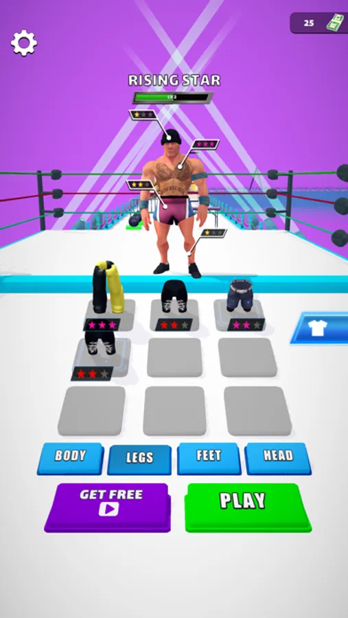 Make sure everything is ready before you start because wrestling is so hard. Spend what you earn to make yourself better, buy items, merge the items you bought and be ready for anything before going to the ring. Championship belts awaits you!