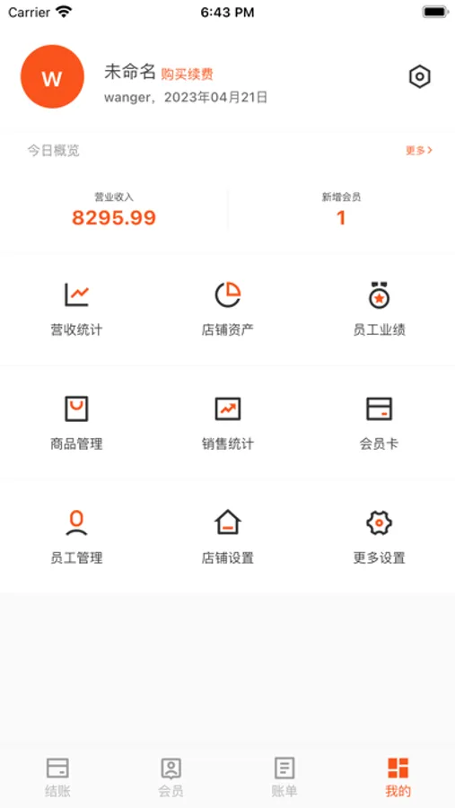 1号会员是一款提供给店铺老板的会员管理系统。主要包括会员管理、充值消费、积分兑换、营收统计等功能。