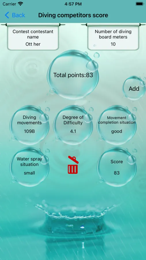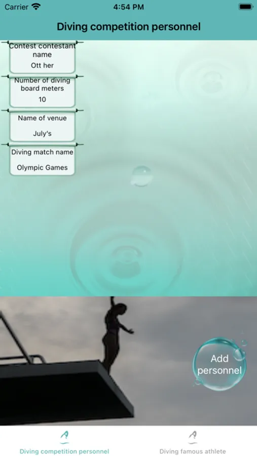 Diving is a beautiful aquatic sport that involves jumping into the water from a high place with various postures or taking off from diving equipment, completing certain postures in the air, and entering the water with specific movements. For each diving competition, record the entry information of all participants, and then you can record the diving actions and final scores of each diver. This is convenient to view the entry status and scores of each diver.