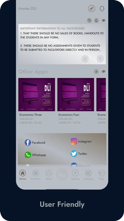 This app was design to help Distance Learning Institute (UNILAG) students practice for their upcoming examination. It contains both theory and objective past questions and answers with explanations. It also contains modules and recommended books of the selected department and level. It also inform students on important information as regards their study. Happy Learning.