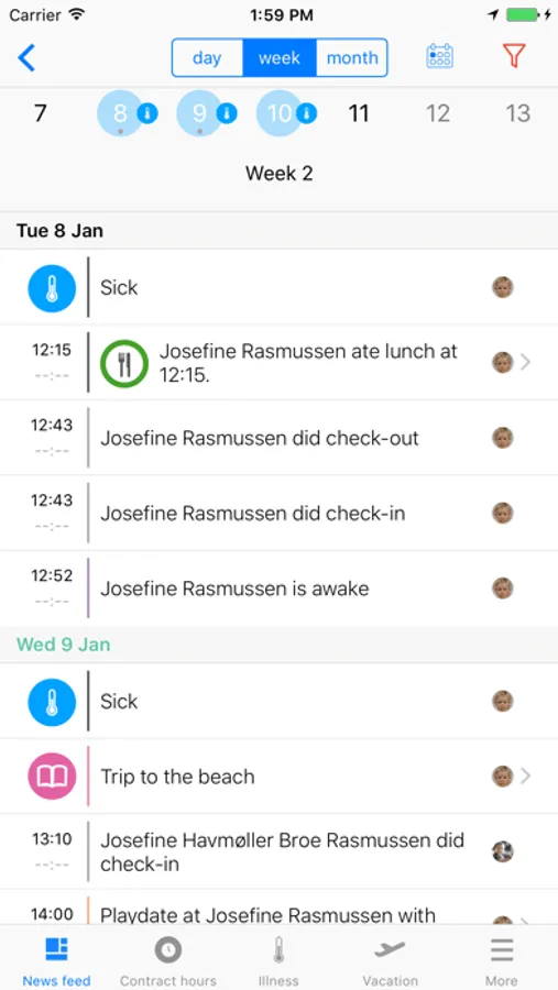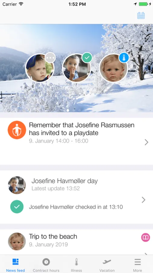 In the News Feed you can view relevant diaries, bulletins, activities, and current images and videos. It is also possible to reply to invitations, activities, conferences and much more. For a better overview of it all, access the App's own Calendar. In the Calendar you can easily access all relevant events sorted by day, week or month.