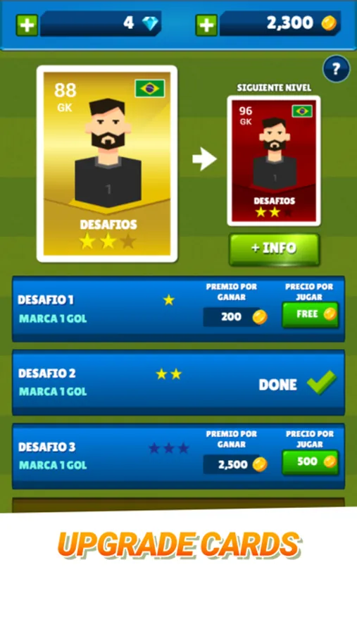 - Upgrade your favorite soccer cards by performing challenges of the best football players in the world.