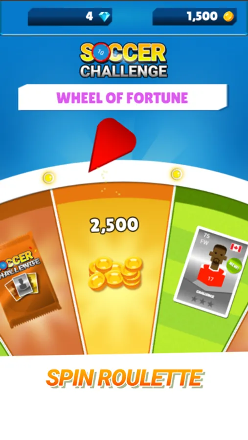 - Spin the roulette wheel with incredible prizes such as: free card packs, gold coins, Diamonds or soccer player cards.