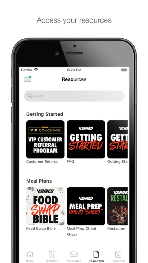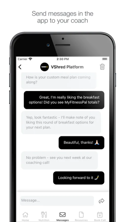 V Shred VIP Customers can connect with your Coach, access your custom meal plans and workouts, and book your coaching calls right inside the app! We’ve made it easy to track your progress and get the most out of your VIP Coaching experience. Enjoy 24/7 access to all your Coaching materials and exercises.