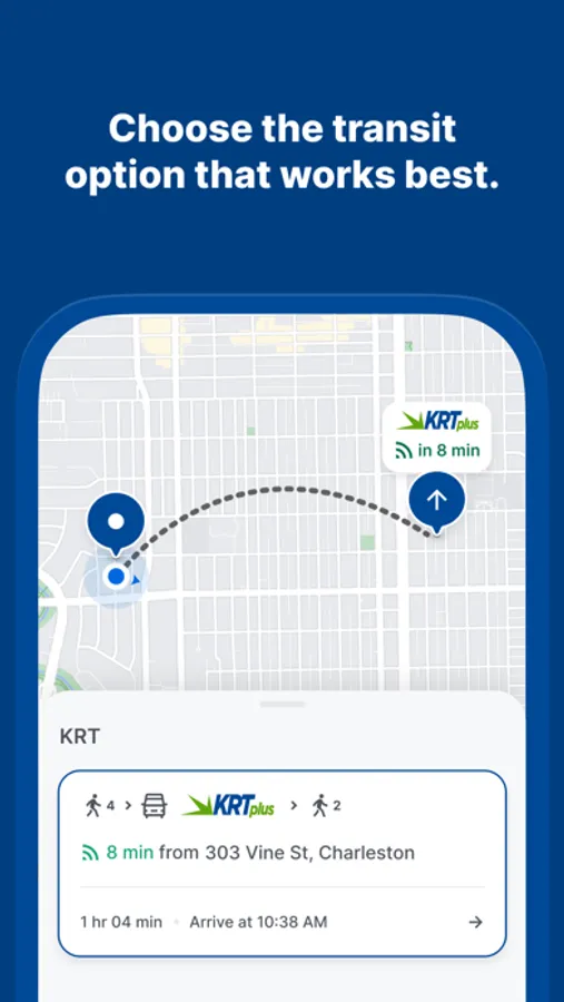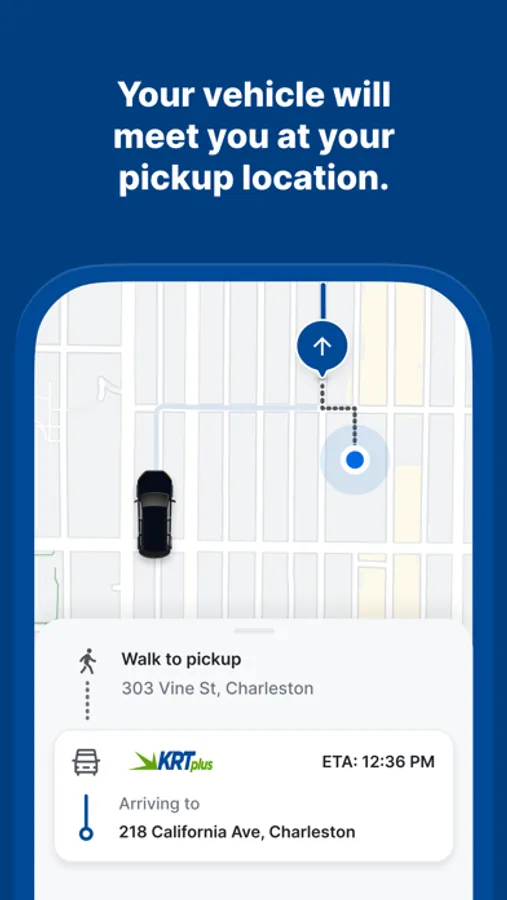 Book an on-demand ride in the app; our technology will pair you with others headed your way. Take a comfortable, affordable ride anywhere in your KRTplus zone or to a place where you can connect with KRT’s regular bus service.