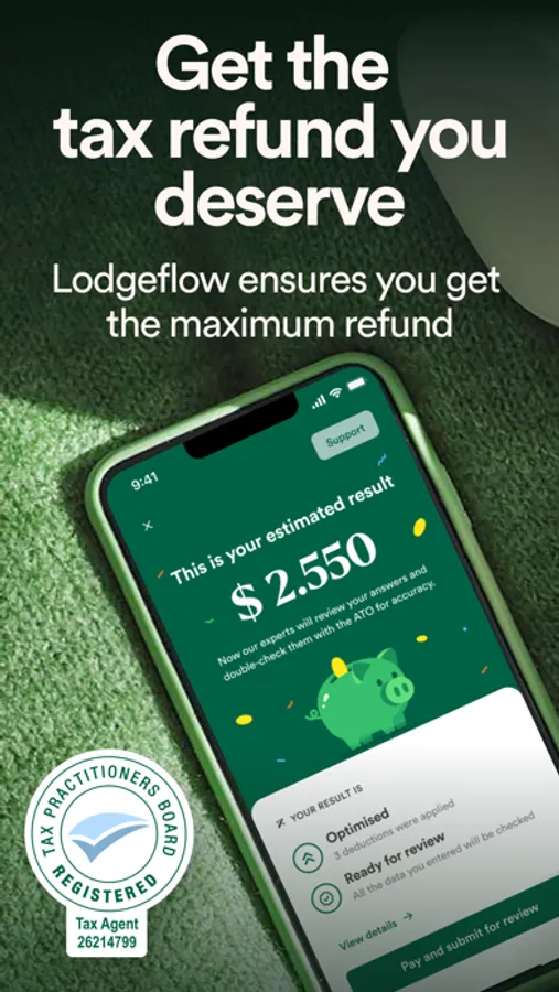 Lodgeflow's fixed fee is competitively priced at just $69.90 with zero hidden charges. We want all Australians to be able to complete their tax with confidence and maximise their refund. The best part? You can see a refund estimate before you pay, and the price of using Lodgeflow can be deducted from your tax return next year (make sure to retain your Lodgeflow tax receipts.)