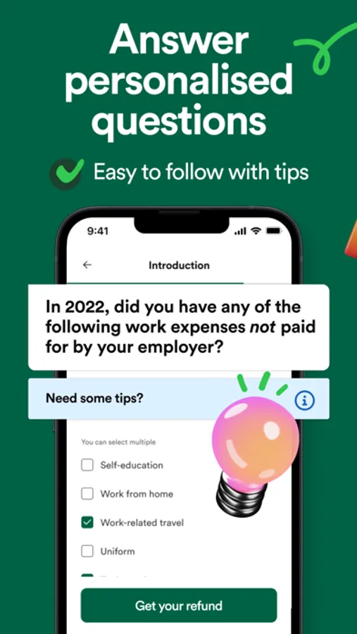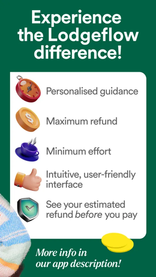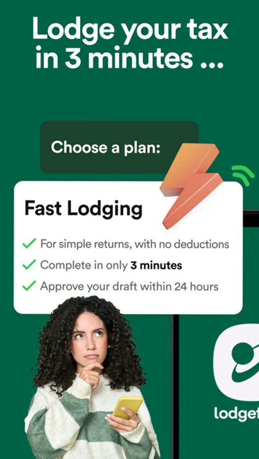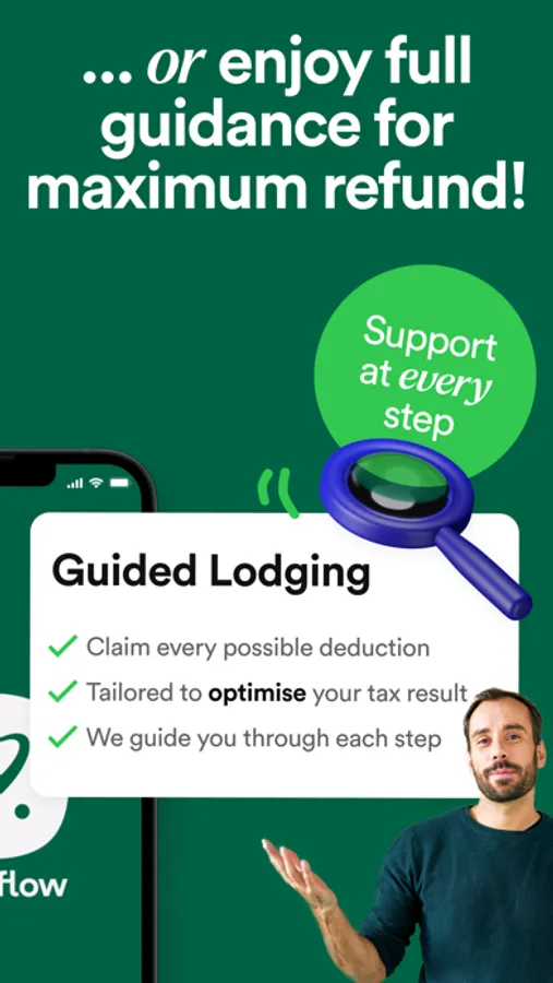 Simple 2023 tax return? Get it done in less time than ever before with Lodgeflow's FastLodging feature. Add your tax file number, answer a few basic questions, and your return can be completed in as little as 3 minutes. Slightly more complicated 2023 return? Don't worry! Lodgeflow's intuitive, guided process will help you complete your return as fast as possible with tips for total accuracy and maximum refund.