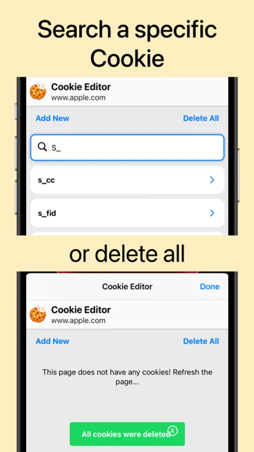 With our app, you can confidently examine and edit your cookies as you please. Cookie Editor equips you with the essential tools to edit the cookies on the current tab of your iOS, iPadOS, and MacOS devices, giving you complete control over your browsing experience.