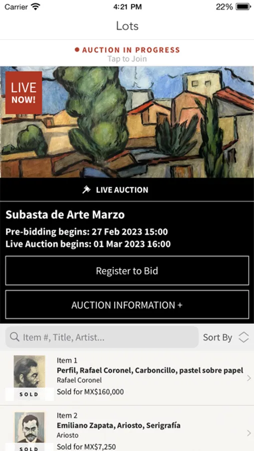 Con nuestra aplicación podrá tener acceso inmediato a nuestras subastas permanentemente, regístrese y haga sus ofertas desde su dispositivo móvil/tableta. Participe desde cualquier lugar y no pierda las excelentes oportunidades: