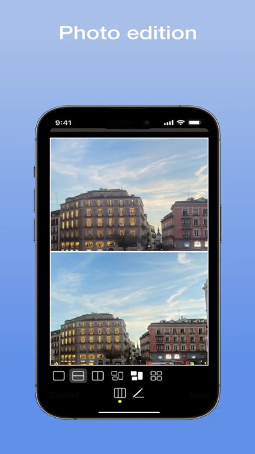 - Get a combined photo and edit them within the app when you shot a photo with multiple cameras.