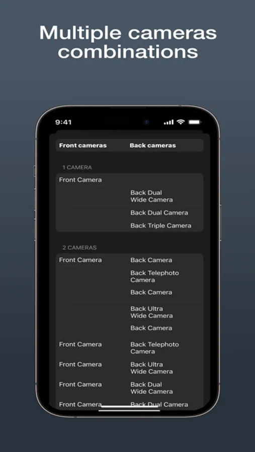 Note: Multicam is only supported by New devices starting with iPhone XR, iPhone XS, iPhone XS Max, and iPad Pro (3rd generation). The app will advice you at the beginning if your device doesn't support Multicam.