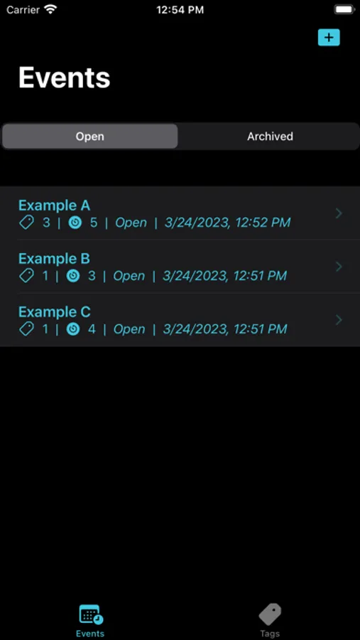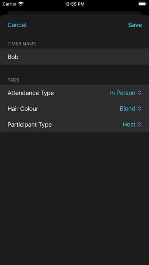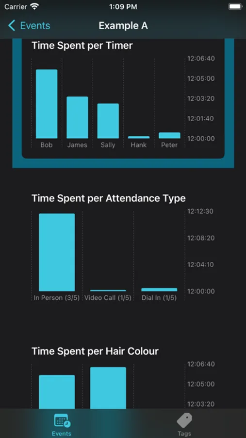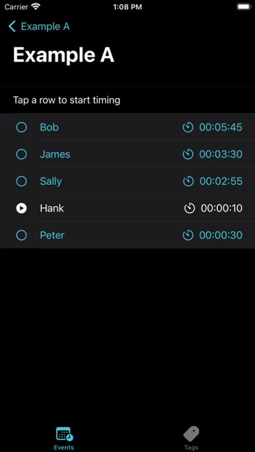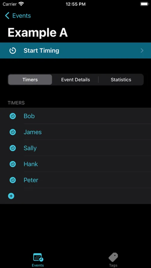 Create multiple timers associated with a single event. Each timer can have multiple tags assigned to it, allowing you to collect valuable statistics on meetings, sports games, cooking times - anything where you want to time something!