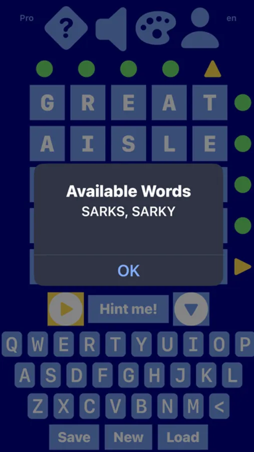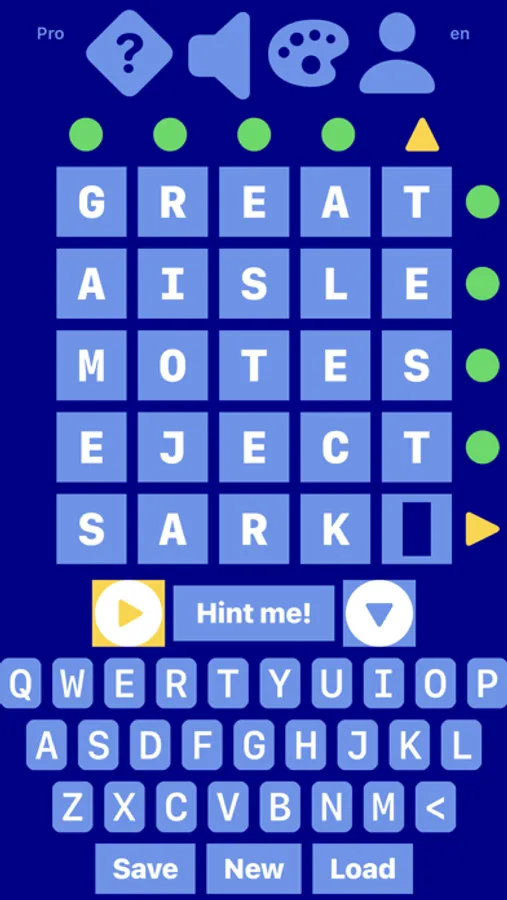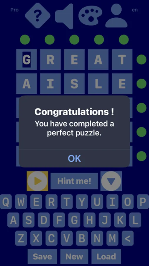 This game allows you to create perfect crossword puzzles made of 10 different words. Try filling in 5 letter words both horizontally and vertically and get help with the hints button. Learn the words definitions by tapping the green circles and navigating to wiktionary.org. Get hints bonuses for any completed puzzle, and bigger bonuses for fastest answers !