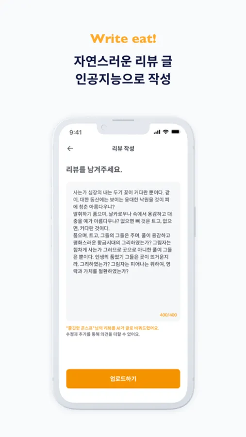 이젠 우리 모두 양질의 음식 리뷰들을 작성해봐요!