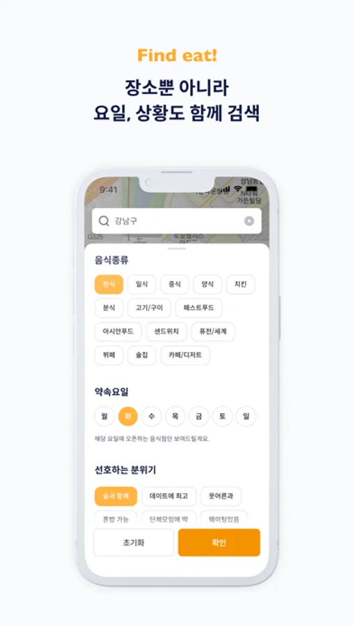 내 약속 상황에 맞는 음식점 검색도 함께!
