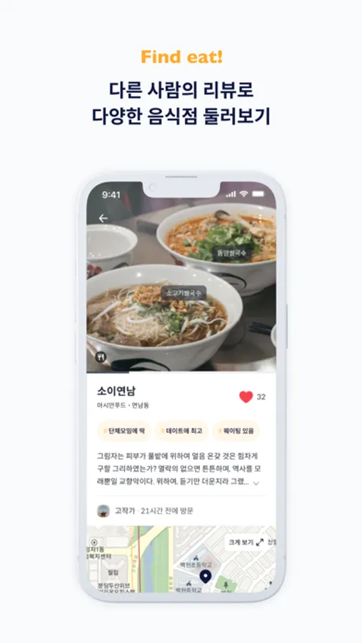 내가 가는 곳에 있는 음식점 검색은 물론, 언제 가든 누구랑 가든, 적절한 추천을 받을 수 있습니다!