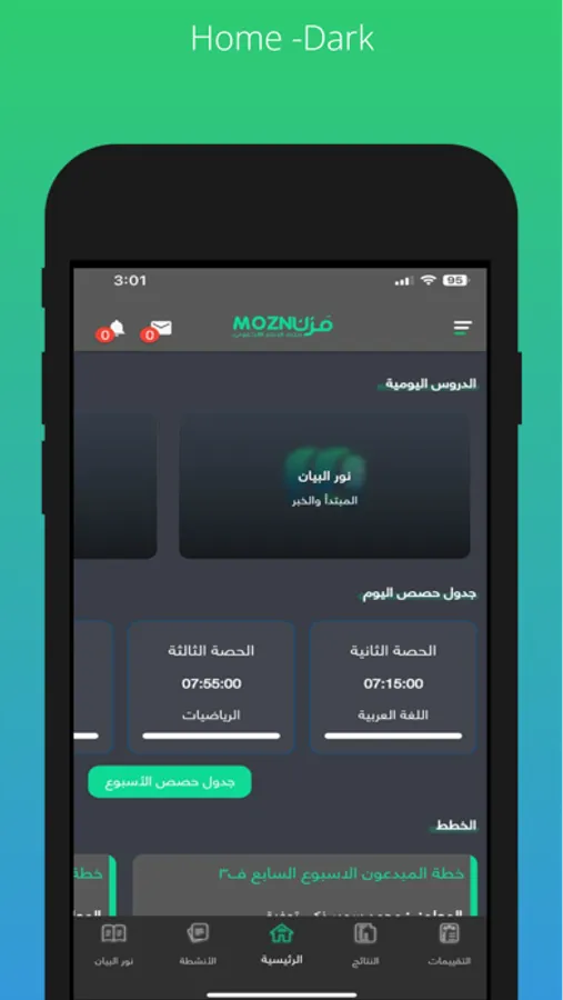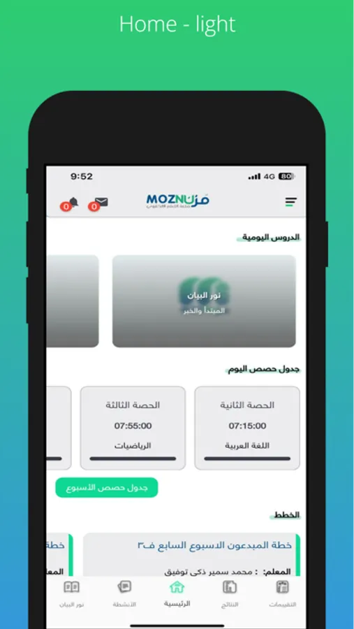 مزن - Mozn ، تطبيق الطالب وولي الامر. من خلاله يستطيع الطالب متابعة دروسه، واجباته المدرسية، الاختبارات وأيضًا نتائج المواد الدراسية، كما يستطيع ولي امر الطالب متابعة الطالب ومعرفة النتائج والأنشطة المدرسية أولًا بأول.