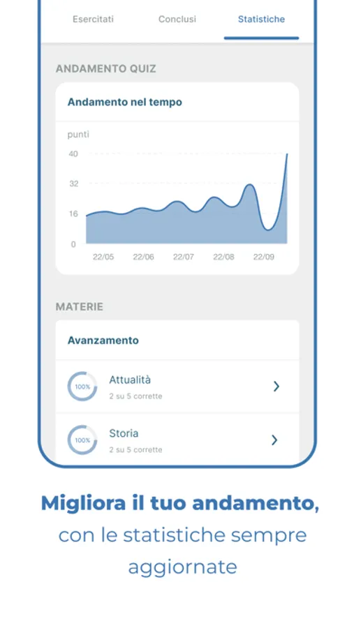 - esercitarti con quiz personalizzati, creati in base alle tue esigenze svolgere simulazioni degli anni passati