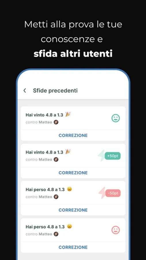 - sfidare altri utenti nello svolgimento dei quiz