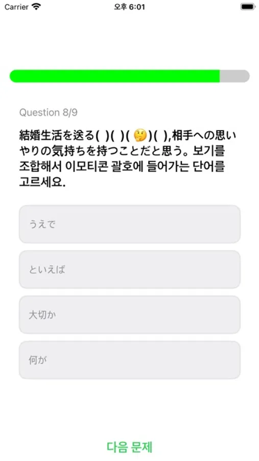 일본어 능력평가 시험 JLPT N2을 준비하는 수험생이 시험치러 가기전에 자신의 실력을 간단하게 확인하고 체크해볼수 퀴즈어플입니다.