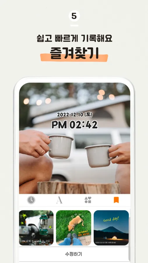 - 취향에 맞게 제작한 타임스탬프를 ‘마이스탬프’로 저장해 지속적으로 사용할 수 있어요.