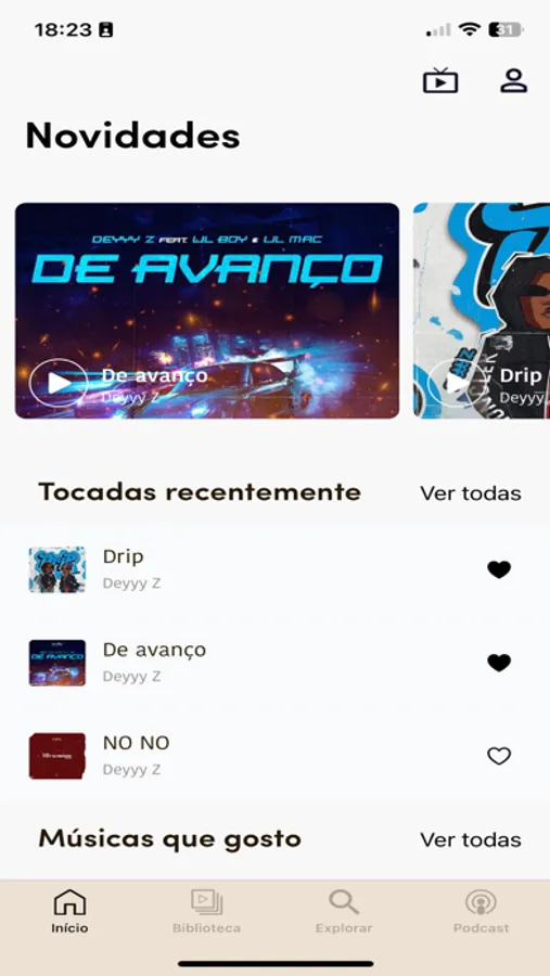 Acesso às novidades musicais, novos álbuns e novos artistas