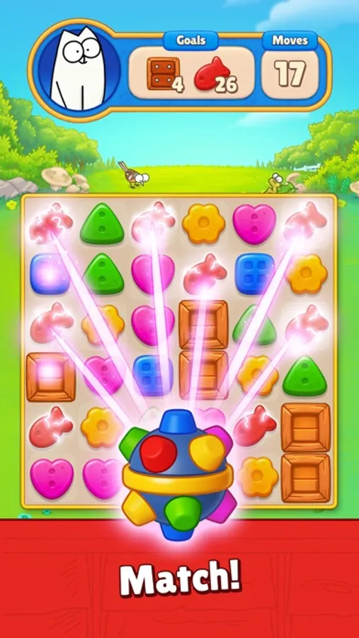 Welcome to Simon's Cat Match, the most purrfectly delightful match-3 puzzle game! Join Simon's Cat on a journey through lush landscapes, collecting delicious treats and solving challenging puzzles. Match three or more treats of the same color, combine amazing boosters, and score points to move to the next level. Play for free and enjoy hundreds of puzzles with tricky obstacles, unique game pieces, hidden-object minigames, and coloring gameplay.
