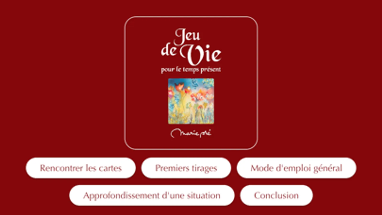 Une collection d’images simples et évocatrices pour tous les publics en quête d’une meilleure connaissance de soi. Ce Jeu n'a pas de fonction divinatoire, mais nous met en contact avec notre réalité intérieure, mémorielle et émotionnelle, pour une meilleure gestion de nos vies.