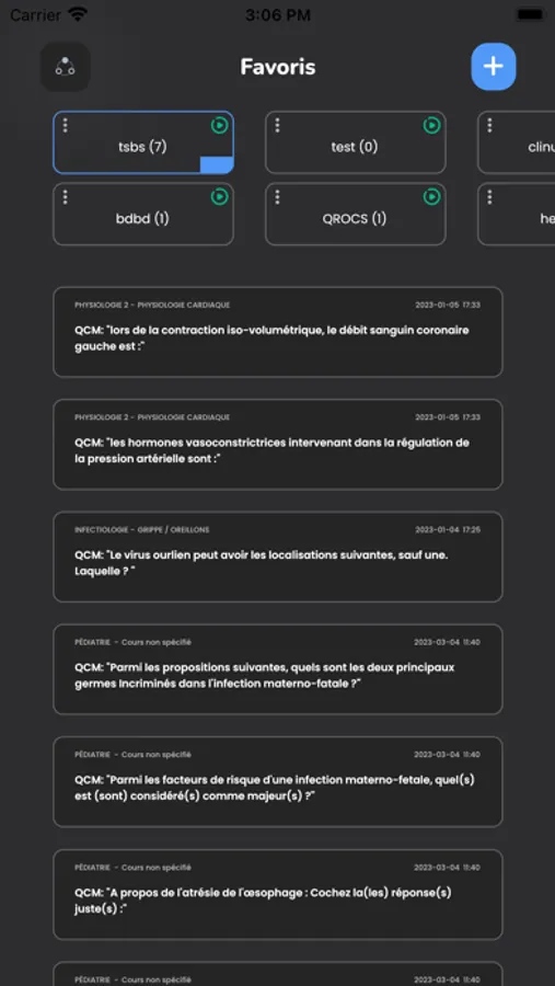 • En plus de la possibilité de trouver des cours et résumés des différents modules, l’option de créer des playlists, de marquer vos QCM favoris, d’ajouter des notes aux QCMs et de discuter les QCMs en groupes.