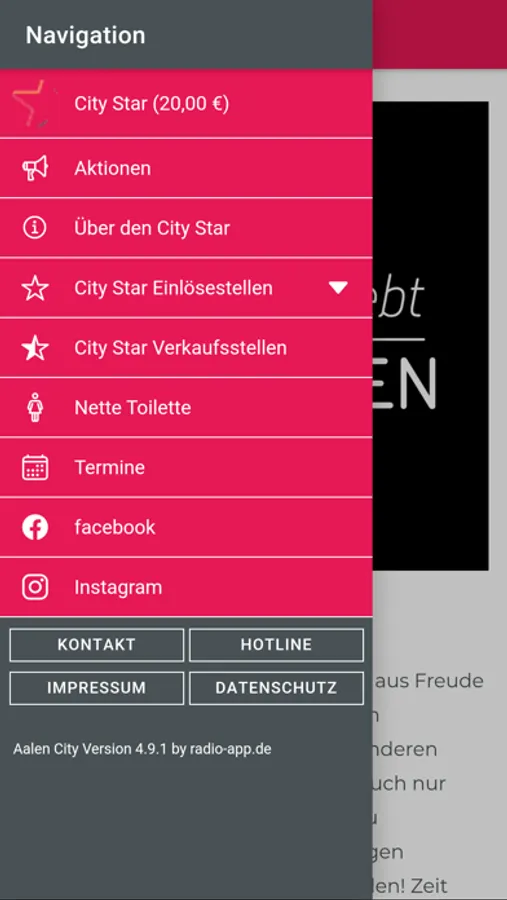Mit der neuen Aalen City App verpassen Sie keine Termine mehr. Lassen Sie sich per Push-Benachrichtigungen über neue Aktionen informieren und finden mobil schnell das passende Geschäft inklusive aller City Star-Partnergeschäfte. Hinterlegen Sie einfach Ihre City Star-Kartennummer und zahlen durch einfaches Vorzeigen der App. Zudem zeigt diese auch immer das aktuelle Guthaben an.