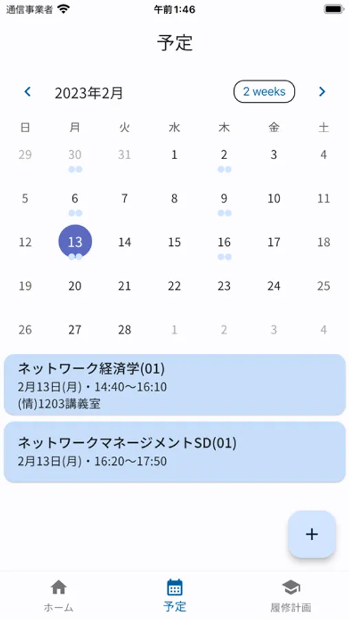 LiveCampusから自動的に時間割を作成したり、予定の管理や履修計画を行うことができます。