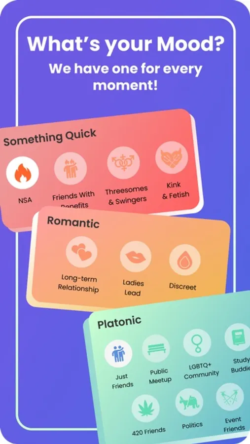 Reinventing dating app standards, MOOD eliminates the awkward introductions and guesswork of regular dating apps. Instead, plunge straight into an ocean of individuals matching your MOOD. If you wish for casual meetups, friendly conversations, romantic experiences, or adventurous explorations, MOOD is your sanctuary–a place where every desire is respected and catered to, beautifully blending multiple dating scenarios into one versatile app.