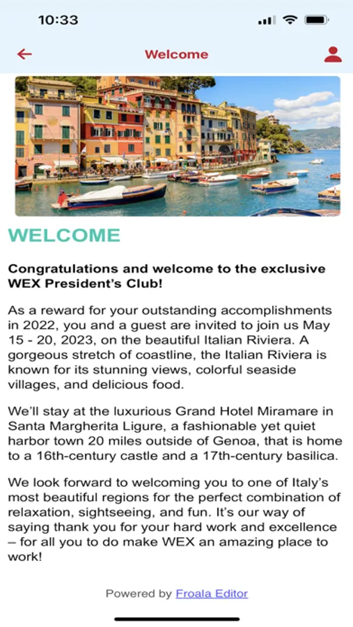 WEX President's Club Italy event app! This app will be your information guide during the trip! We look forward to seeing you at Grand Hotel Miramare!