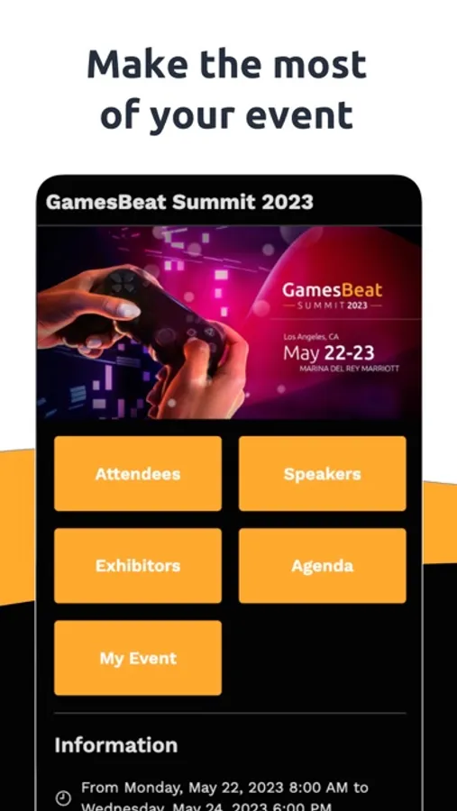 GamesBeat Summit 2023 is the premier event for gaming industry leaders. With this app, you can create a customized schedule, browse the speaker lineup, and connect with other attendees. The app's matchmaking feature suggests relevant people to connect with, making networking a breeze. You can also use the app to participate in interactive sessions, ask questions, and vote on polls. With this app, you'll have all the tools you need to make the most of your GamesBeat Summit experience. Download the app today!