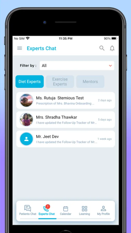 Experts stay connected with the participant through the app & receive daily messages related to diet, exercise, relevant activity, freedom stories, etc. They can receive participants' blood sugar levels and other vitals like BP and weight & communicate back via chat.