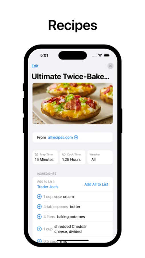 Create recipes or import them from the web and add ingredients to your shopping list with a tap. Add ingredients, steps, recipe image, cook time, prep time, number of servings, and more. Enjoy a great cooking experience right on your device. You can now create a recipe from a list of ingredients and steps. Type them out, paste them in, or scan them using your camera, and peppercorn will automatically find the quantity and units of the ingredients and add them to the recipe along with the steps.