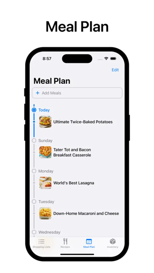 With Shopping Lists at its core, Recipes, Meal Plan, and Inventory are all seamlessly integrated together. Add items to your shopping list directly from recipes, set inventory items to be automatically added to your shopping list when they expire, view the recipes right from your meal plan, and so much more.