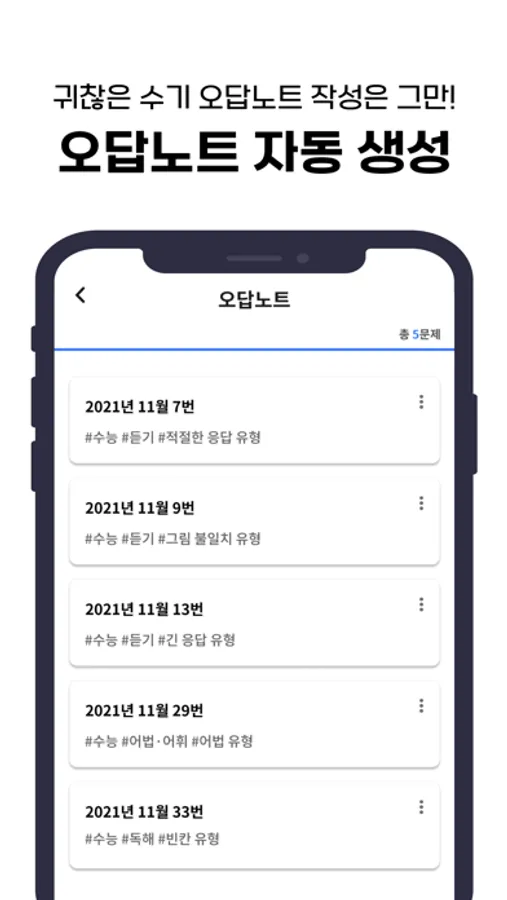 무거운 참고서를 들고 다니고 직접 오답노트를 작성해야 하는 번거로움을 해소하여 언제 어디서든 쉽고 편리하게 문제를 풀어볼 수 있습니다.