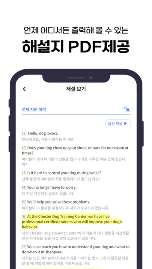 - 단순히 문제만 풀어보는 것이 아닌 각 문제별로 심화학습을 통해 문장의 구조와 문장에 대한 보충 설명을 확인할 수 있습니다.