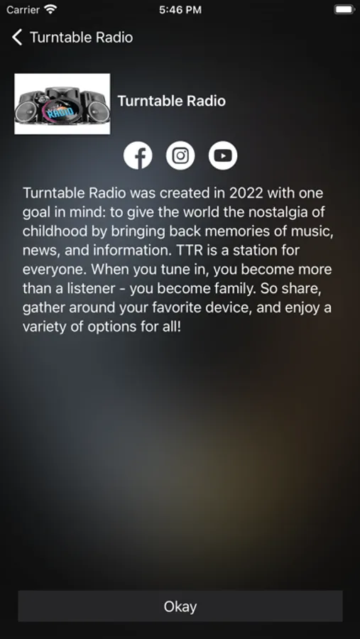Turntable Radio was created in 2022 with one goal in mind: to give the world the nostalgia of childhood by bringing back memories of music, news, and information. TTR is a station for everyone. When you tune in, you become more than a listener - you become family. So share, gather around your favorite device, and enjoy a variety of options for all!