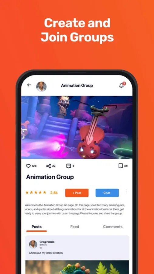 Through our chat and group features, collaboration has never been easier. Share your work, spark creative conversations, and forge connections that may lead to your next big project.