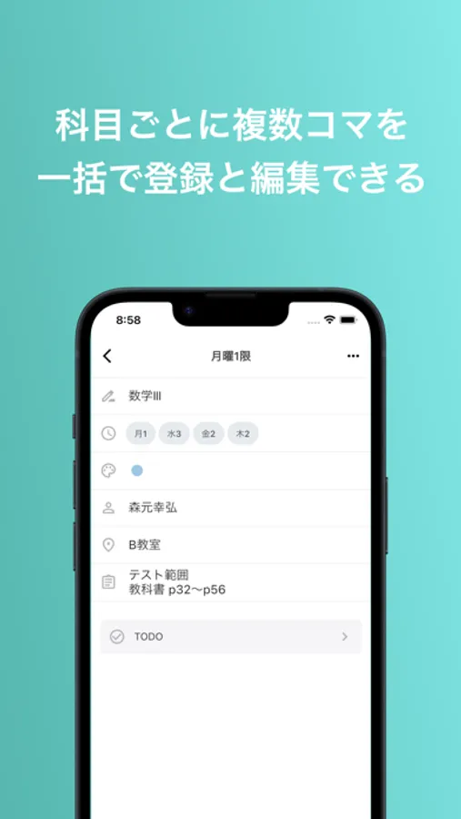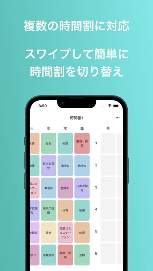 ・複数の時間割を登録、左右スワイプで簡単に切り替え