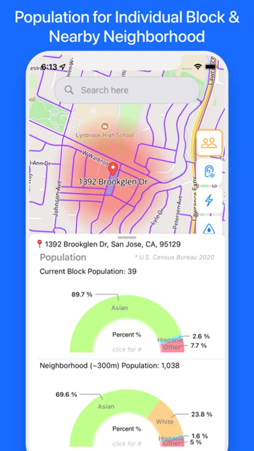 - Population & distribution at different granularities: from county → zipcode → census tract → census block (also nearby block aggregation);