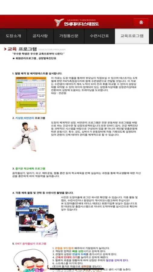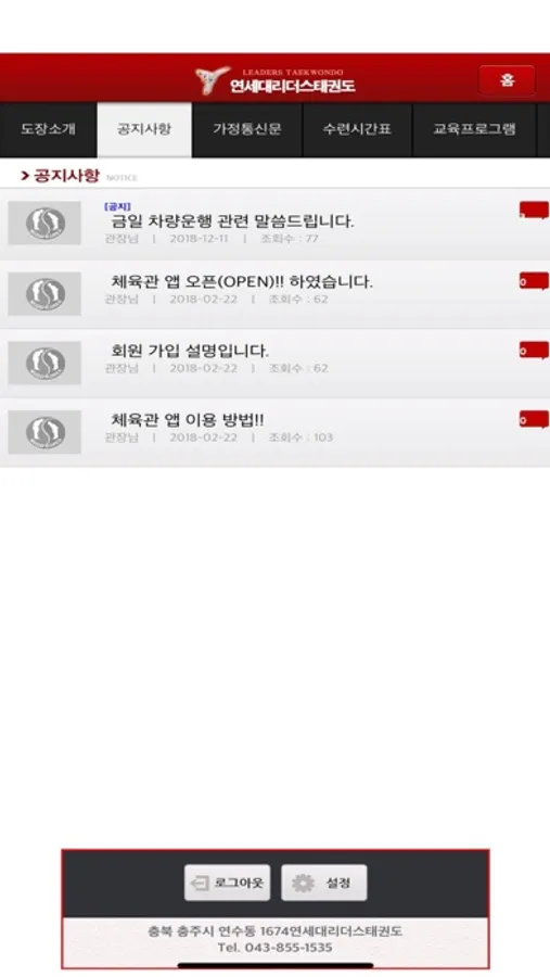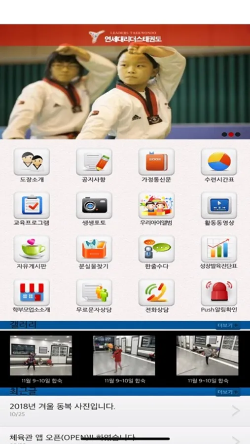 충북 연세대 리더스 태권도를 소개하고 홍보하는 앱입니다.