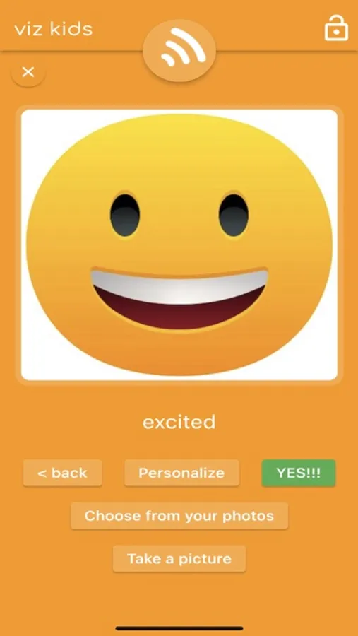 - See a list of common emotion visuals like happy, sad, excited, angry, etc. Scroll through the list and have the child tap on the visual that represents their feeling.