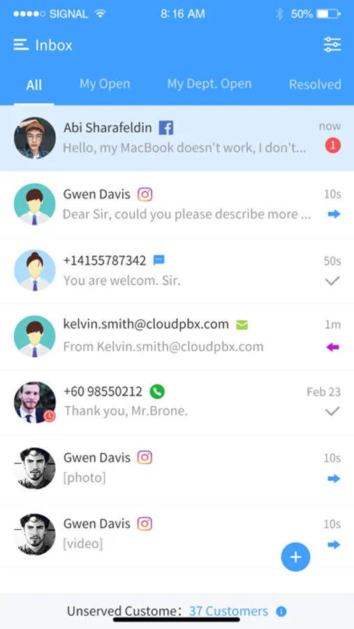 Cloudfon Omnisuit is the fastest and most robust omnichannel inbox for all of your social messaging channels.