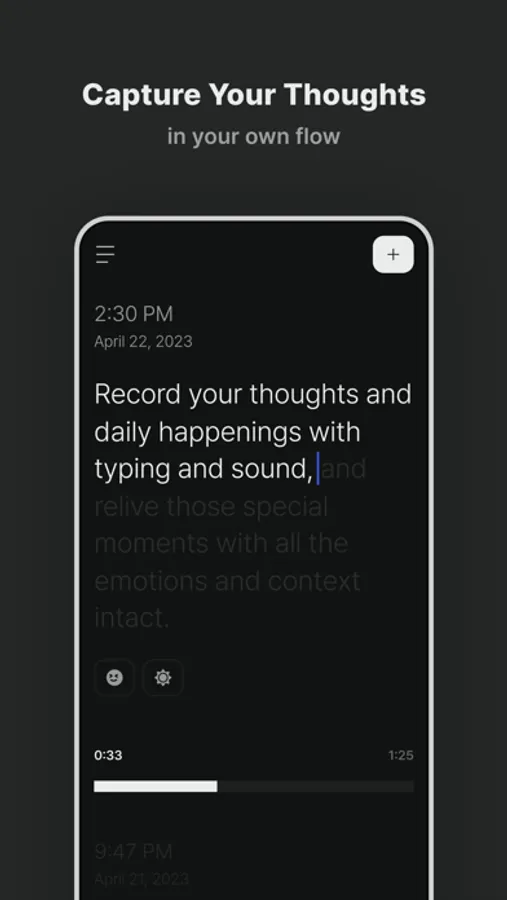 Record your thoughts and daily happenings with typing and sound, and relive those special moments with all the emotions and context intact.