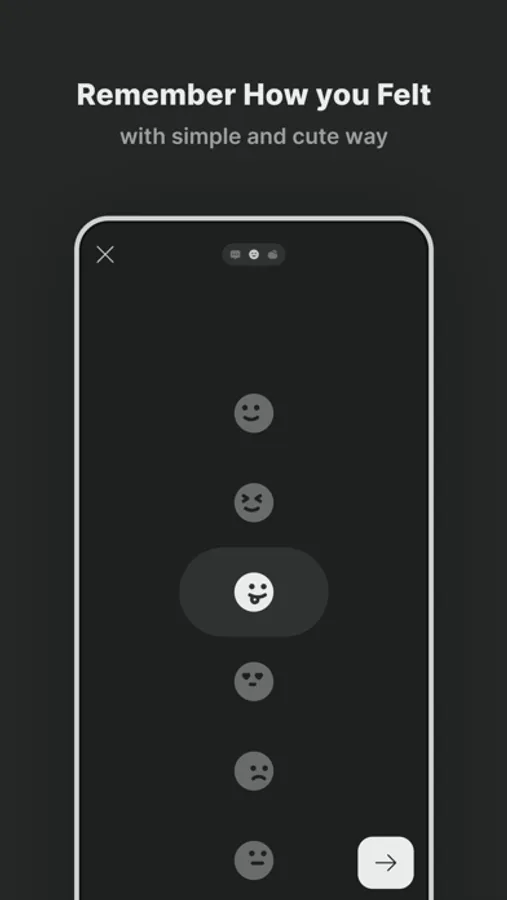 Remember how you felt when you wrote that Moment. With simple facial icons, you can mark your emotions and capture the mood and feelings you had in that moment.